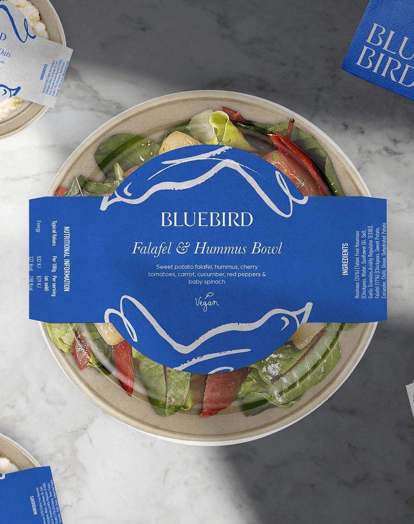 Nestled amidst the hustle of Dublin Airport’s Terminal 1, Bluebird offers a modern fusion of coffee and wine, inviting patrons to perch and unwind in their preferred corner. Drawing from the fluidity of liquid ink, illustrations mirror the graceful flight of the bluebird, infusing moments of joy and flavour into every touchpoint.